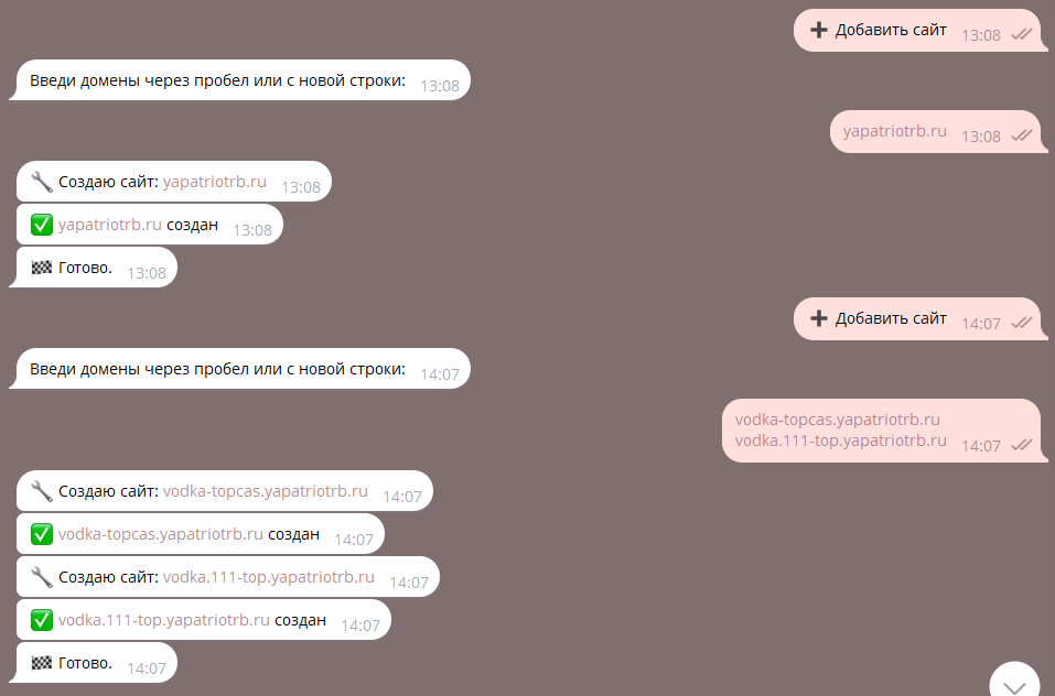Вводим домен ИЛИ домены одним сообщением если требуется привязать сразу N - колличество доменов \ поддоменов